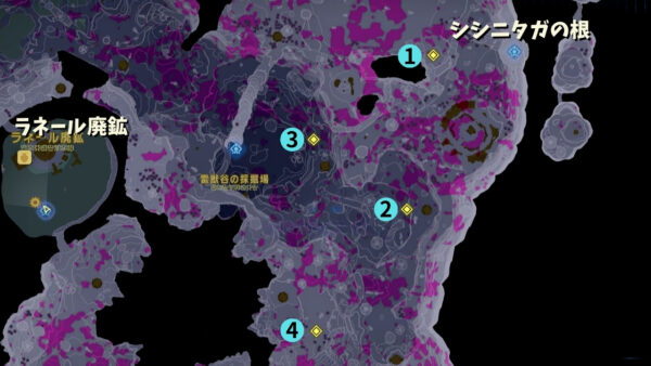 朽ちて無い『ゾーラの剣』が出る影の像は、13ヶ所あるのですが、ラネール廃鉱東の4ヶ所が連続で周り易いです。