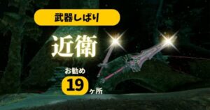 朽ちてない『近衛の武器』は、①ゲルド高地地底、②ラネール湿原地底、③ハテール海地底で手に入ります。